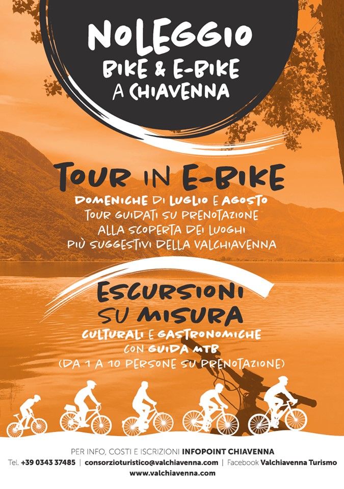 Tutte le Domeniche di Luglio e Agosto è possibile prenotare i TOUR IN E-BIKE alla scoperta dei luoghi piu suggestivi della Valchiavenna e ESCURSIONI SU MISURA con Guida MTB